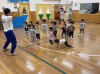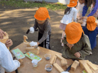 自然の中でのびのび育つ 幼稚園園庭の南側の林… それに続く公園の森は四季の便りを贈ってくれます。 子ども達はその便りを五感で受けます。 そして自然に働きかけます。