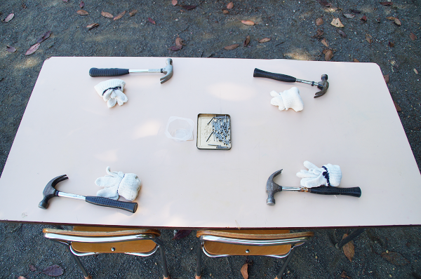 その名の通り”とんかち”と”釘”を使って木製の作品を製作します。